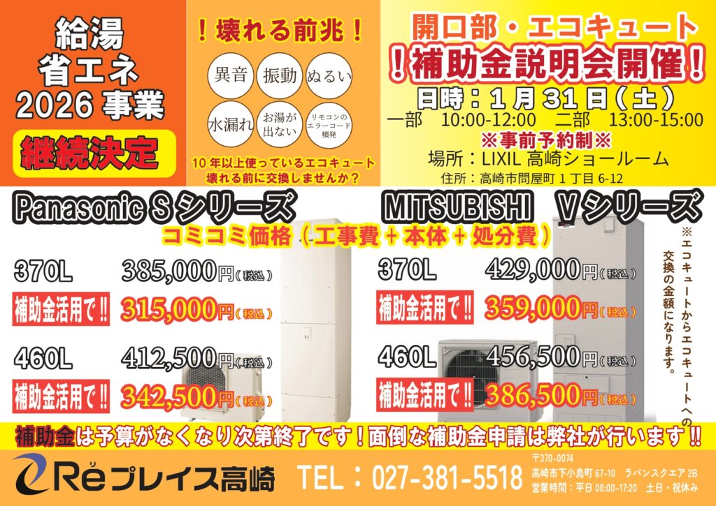 📢「給湯省エネ2026事業」エコキュート交換